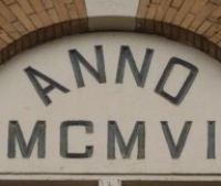 Oorspronkelijke steen uit 1935 die uit de gesloopte voormalige bebouwing bewaard is gebleven en in 2002 in de nieuwbouw herplaatst.