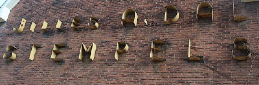 Op de gevel staat in grote uitstekende letters Hoe het groeide. In de oorlog verbasterde dit naar: hoe het loeide.